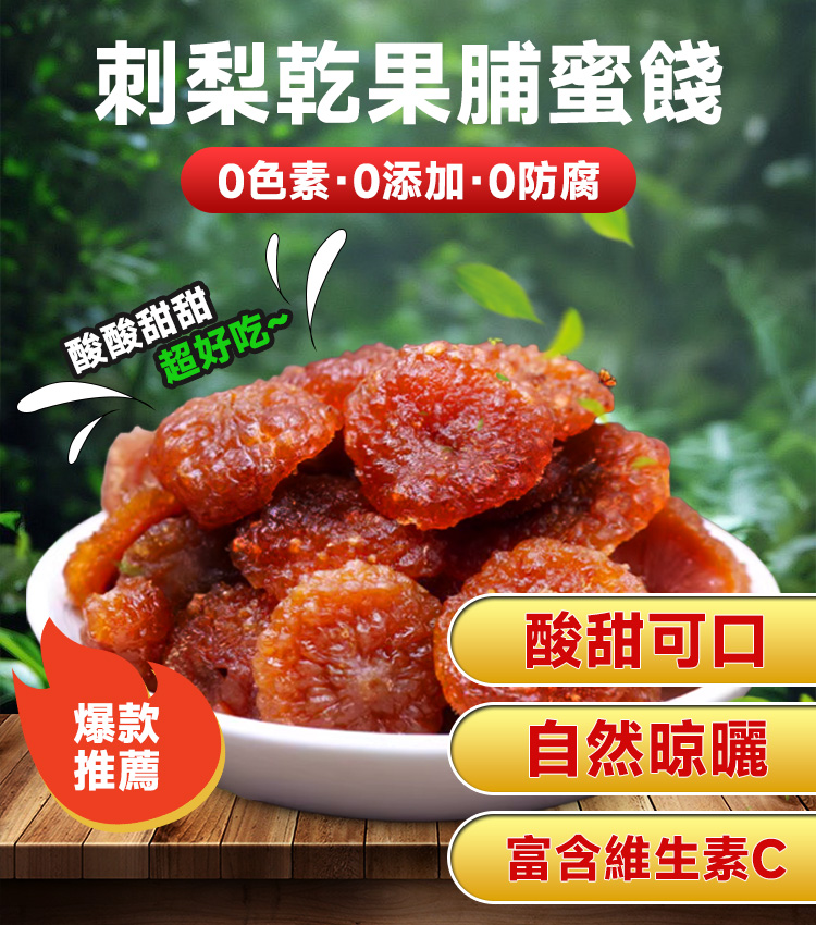 25分鐘前【健康美食-維C隻王刺梨乾果脯蜜餞】口感清香甘甜,老少皆宜,純乾果無添加,降血糖,清血脂,現特惠活動買的越多越優惠! - 【大份量,吃了還要買】九入組 NT$1498 (900g刺梨乾)